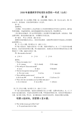 2008年高考真题英语(山东卷)(原卷版).pdf