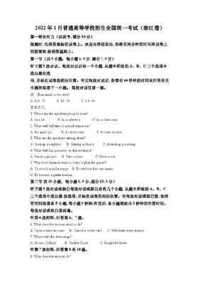 精品解析:2022年1月普通高等学校招生全国统一考试(浙江卷)英语试题 (解析版).docx