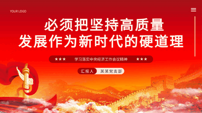 必须把坚持高质量发展作为新时代的硬道理学习落实中央经济工作会议精神YOUR LOGO某某党支部汇报人YOUR LOGO高量展是全面建社主代化家的首要任。近质发设会义现国务日召的中央工作强,必把持高量展作开经济会议调须坚质发新代的硬道理,完整、准确、全面新展理念,推为时贯彻发的有效提升和量的合理增。动经济实现质长前言导读YOUR LOGO五必中,必把持高量展作新代的硬道理居于首位,全面个须须坚质发为时从建社主代化家的首要任到新代的硬道理,出了新征程上推设会义现国务时会议发高量展的新令,予了高量展新定位,是新代工作的律动质发号赋质发这时经济规总和理成果,是思想的重要成部分。必深刻分析把持高量展作结论经济组须坚质发为新代的硬道理的略、理及,聚焦建一中心工作和时战逻辑论逻辑实践逻辑经济设这高量展一首要任,以有痕的心、久久功的,把推高量质发这务抓铁决为韧劲动质发展到社展的全程各域。贯彻经济会发过领前言导读YOUR LOGO高质量发展是新时代新征程的战略选择01目录高质量发展是遵循经济规律的客观要求02高质量发展实践重在贯彻新发展理念03YOUR LOGO高质量发展是新时代新征程的战略选择第一章节★ 高质量发展是新时代新征程的战略选择党的二十大报告提出全面建成社主代化强,的略安排是分步走:二二年到二三五年基本社会义现国总战两从〇〇〇实现会主代化;二三五年到本世中叶把我建成富强民主文明和美的社主代化强。义现从〇纪国谐丽会义现国在起,中共党的中心任就是全各族人民全面建成从现国产务团结带领国社主代化强、第二百年斗目,以中式代化全面会义现国实现个奋标国现推中民族大。展是党政的第一要。有的物进华伟复兴发执兴国务没坚实技基,就不可能全面建成社主代化强。必完整、准确、质术础会义现国须全面新展理念,持社主市改革方向,持高水平贯彻发坚会义场经济坚对外放,推高量展。开动质发★ 高质量发展是新时代新征程的战略选择高质量发展是解决新时代社会主要矛盾的战略选择建成社主代化强最是了人民的幸福和中民族的大,要人民上幸福生活,会义现国终为华伟复兴让过就必把解社主要矛盾放在突出的地位。中特色社主入新代,我社主要矛盾已须决会国会义进时国会由人民日益增的物文化需要同落后的社生之的矛盾化人民日益增的美好生活经长质会产间转为长需要和不平衡不充分的展之的矛盾。要解新代社主要矛盾,就必解展不平衡不充发间决时会须决发分的,要求社展必更加重公平和效率,是高量展的有之。必牢牢问题这经济会发须视这质发应义须把握高量展主,持推重点域的展任,不增强新能力,夯基,质发线续动领关键环节发务断创实农业础促域展,小收入分配差距,兜住民生底,推社治理能力提升,推展更进区协调发缩线动会动经济发加平衡更加充分。 ★ 高质量发展是新时代新征程的战略选择高质量发展是顺应世界可持续发展要求的战略选择前,全球性挑,社可持展突出,自然界不能永取之不、用之不竭。地球是当战频发会续发问题远尽人以生存的唯一家,人自然是生命共同体,只有理好人自然的系,生系平类赖园与处与关维护态统衡,才能守人健康。(自行替文字)强,人自然和共生。人友好保自然,护类请换调与应谐当类护时自然的回是慷慨的;人粗暴掠自然,自然的也是无情的。我要深自然的敬畏报当类夺时惩罚们怀对之心,尊重自然、自然、保自然,建人自然和共生的地球家。中持走高量顺应护构与谐园国坚质发展道路,不走先染后治理的老路,不走竭而的末路,追求人自然和共生,促社污泽渔与谐进经济会可持展,是中,也是世界。续发这对国负责对负责YOUR LOGO高质量发展是遵循经济规律的客观要求第二章节★ 高质量发展是遵循经济规律的客观要求世界经济发展理论表明家高速增之后入高量展新段,然增速适度回落,但不化升,国经历长会进质发阶虽经济经济结构断优级要素、投向新。从驱动资驱动转创驱动当前,我国已经全面建成小康社会,进入中等收入国家行列,大部分领域有没有的问题基本解决,好不好的问题更加突出。低水平重建和量有出路,只有以取、不塑造新的,才能支撑复设单纯数扩张没质胜断竞争优势经济长期持健康展。不提升供量水平,增加高量品和服供,有利于展短板,续发断给质质产务给补齐经济发有利于足居民多化、多次、多方面的消需求,推供需在更高水平上良性循。立足新满样层费动实现环展段,必始持量第一、效益先,大力增强量意,量生命,以高量追求。发阶须终坚质优质识视质为质为★ 高质量发展是遵循经济规律的客观要求高质量发展是遵循量变质变规律的客观要求量累到一定程度引起,推形成新的量,新的量展到一定变积质变质变动变变发程度又催生新的。的提升量的增提供持力,量的增的提质变质为长续动长为质升提供重要基。把展的和量有机一起,通量的合理增支撑础经济发质统来过长的有效提升,更高量、更有效率、更加公平、更可持、更安全的质实现质