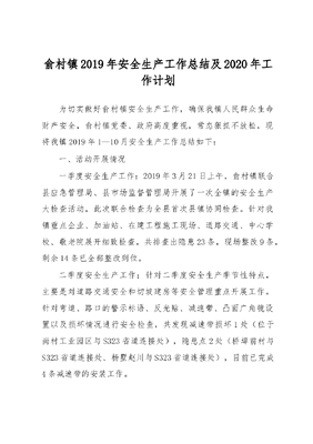 俞村镇2019年安全生产工作总结及2020年工作计划为切实做好俞村镇安全生产工作,确保我镇人民群众生命财产安全,俞村镇党委、政府高度重视,常态狠抓不放松,现将我镇2019年1—10月安全生产工作总结如下:一、活动开展情况一季度安全生产工作:2019年3月21日上午,俞村镇联合县应急管理局、县市场监督管理局开展了一次全镇的安全生产大检查活动,此次联合检查为全县首次县镇协同检查。针对我镇重点企业、加油站、在建工程施工现场、道路交通、中心学校、敬老院展开细致检查,共排查出隐患23条,现场整改9条,剩余14条已全部整改到位。二季度安全生产工作:针对二季度安全生产季节性特点,主要是对道路交通安全和切坡建房等安全管理重点开展工作。针对弯道、路口的警示标语、反光贴、减速带、凸面广角镜设置以及损坏情况进行安全检查,共发现减速带损坏1处(位于尚村工业园区与S323省道连接处),隐患点2处(桥埠前村与S323省道连接处、杨墅赵川与S323省道连接处),目前已完成4条减速带的安装工作。认真开展防风险保平安迎大庆消防安全执法检查专项行动、5.12防灾减灾日、安全生产月、1+6+N等工作,通过召开专题会议、组织学校开展安全逃生演练、为企业职工发放宣传资料、走访各村人流量较多的公共场所等形式,发放宣传材料百余份,读本六十余份,宣传了消防安全、防震减灾等安全知识,达到了预期效果。三季度安全生产工作:三季度安全工作主要集中在消防安全,为提高镇、村干部、企业和敬老院的应急疏散能力,增强我镇工作人员、企业职工及老人的消防安全意识,俞村镇积极组织消防安全知识培训和演练活动,通过培训和演练,大家掌握了灭火器等消防器材的使用方法,进一步提高了大家对火灾事故的应急处置能力和自我防范、自救互救能力。从实际出发,适时开展安全生产检查。中秋、国庆两节期间,我镇开展了食品安全检查和安全隐患大起底大排查行动,发现企业普遍存在不佩戴口罩、安全帽等劳保用品的现象,已通知企业立即整改。共排查出隐患13条,现场整改6条,其余7条企业正在整改中。四季度安全生产工作:九月底我镇开展了安全隐患大起底大排查行动,10月份我镇集中力量进一步推进各领域隐患排查全覆盖,并再次深入企业确认企业隐患整改情况,做好记录和材料收集工作。二、存在问题1、部分企业虽有安全生产领导机构,但规章制度不健全,安全生产制度执行不力,严重影响了安全生产工作的正常进行;个别企业负责人责任意识淡薄,对安全生产工作不够重视、违规操作现象时有发现。2、有的企业由于经济效益差,设备老化,又缺乏必要的技改投入,造成许多不安全因素的存在。三、2020年工作计划第一、继续抓好重点领域生产安全。要加大对烟花爆竹的监管,确保每个零售点证件齐全,进货渠道合规;要进一步强化交通运输安全,我镇过往车辆多,易发生事故,所以要发挥交通劝导员的宣传、劝导作用,在车辆集中的时间段,安排人员到事故易发路段进行现场巡查,把交通事故风险降到最低;对重点企业、学校、加油站、敬老院的检查要作为日常工作开展,对发现的隐患及时提出,出具安全生产检查结果,定期回访,确认隐患已整改到位,确保生产安全。第二、加大宣传力度。继续开展1+6+N专项整治工作,通过开展安全专题教育、发宣传单页、悬挂宣传标语等方式,筑牢安全生产防线,形成全社会关心、支持、参与安全生产的良好氛围,切实提高广大人民群众的安全意识和防范技能,努力营造更安全稳定的生产生活环境。要积极开展各种宣传教育活动,宣传《安全生产法》、《安全生产条例》,坚持宣传安全第一、预防为主、综合治理方针,要把安全生产的理念,贯穿在整个安全生产始终。