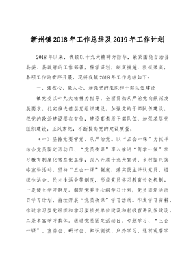 新州镇2018年工作总结及2019年工作计划2018年以来,我镇以十九大精神为指导,紧紧围绕自治县县委、县政府的工作部署,科学谋划,制定措施,狠抓落实,各项工作均有序开展,现将我镇2018年工作总结如下:一、强核心、聚人心、加强党的组织和干部队伍建设镇党委以十九大精神为指导,全面贯彻从严治党向纵深发展要求,扎实推进基层党组织建设,加强党的干部队伍建设,把党的政治建设摆在首位,建设高素质干部队伍,加强基层党组织建设,正风肃纪,不断提高党的建设质量。(一)坚持党要管党、从严治党。以三会一课为抓手结合党员固定活动日、党员夜课深入推进两学一做学习教育制度化常态化工作,深入开展十九大宣讲、乡村振兴战略宣讲活动,坚持三会一课制度,落实民主评议党员、组织生活会、民主生活会等制度,形成党员学习教育长效机制。一是健全学习制度。制定党委中心组学习计划,党员固定活动日学习计划,持续开展党员夜课学习活动。印发学习资料,推进学习型党组织和学习型机关单位建设和村级宣讲队伍建设。二是丰富学习载体。通过党员固定活动日、专题学习、三会一课、宣讲会、研讨会、知识测试、户外学习、逐村观摩学习等形式,积极开展各类学习活动。截止目前围绕党章、习近平总书记新思想科学理论体系、乡村振兴战略、关于学习习近平关于脱贫攻坚重要思想,廉政教育,基层党建、发展村集体经济等主题,开展了11次党员固定活动日活动,8次党员夜课,17场次乡村振兴宣讲会,11次专题学习,领导干部上台讲党课11人次,年轻党员上台讲党课12人次,主题实践教育3次,逐村观摩学习2次、组织开展对标定级、整体提升、乡村振兴、争创五旗宣传活动。三是抓实组织生活。以春节、七·一活动为契机,开展党员群众拔河竞技等体育活动、唱红歌·颂党恩红歌比赛活动,慰问困难老党员,加强党员理想信念教育,重视提高党员思想意识,引导督促党员严格落实党内有关规定。倡导领导干部上讲台,普通党员分享学习心得相结合,开展大兴学习之风。发挥党委中心组学习的引领作用,鼓励年轻同志、老领导,班子成员上台讲党课。四是加强督促检查力度,建立日常督促检查制度,每季度随机抽查各村党建工作,使党建工作抓在日常,严在经常,使党支部成为脱贫攻坚中的战斗堡垒,发挥党员先锋模范作用。(二)坚持推进乡村振兴助脱贫攻坚。打造党建规范化示范点,基层党组织建设成效显著。以党建工作示范化,标准化的方式推动全镇党建工作均衡发展。组织17个村(社区)开展逐村观摩互评,整乡推进提升工作活动,让各村(社区)相互学习,根据观摩互评结果,选点进行结合自治县党建示范带创建,打造我镇党建示范点,打造那么村、弄桑村、者隘村、水洞村民族+产业+党建示范带和党政支部、四大社区组织生活规范化示范带,积极争取上级资金,努力打造我镇党建新亮点。(三)坚持加强基层队伍建设。通过落实三会一课制度和党员固定活动日制度,组织党员开展理论学习和党性教育,使党组织生活成为党员提升致富能力的着力点,抓好党员队伍管理,做好党员创业发展基金调查发放工作,让有发展前途,有闯进的党员发展致富,切实培养党员致富带头人。加强村(社区)两委干部培训,强化党组织书记第一责任人职责,年初签订党组织书记责任书,抓好带头人队伍建设,提高带领群众脱贫致富能力。深入推行农村党员积分管理和支部对标定级工作,使党员积分工作常态化、好落实、挖掘优秀党员,提升党员凝聚力和群众引领作用。今年计划发展党员10人,严格党员发展程序,按时收缴党费。推行党员亮身份制度,要求在职党员上班期间佩戴党徽,发挥党员模范作用。深入推进村级党组织星级化管理,抓好星级创建,核验2016年星级党组织民德村党支部保留四星,弄桑村、那烘村党支部保留四星,2017年评定中,民权社区党总支部获五星、马雄村党支部获三星。开展软弱涣散村党组织排查整顿工作,提升党组织整体水平、使基层党组织、党员群众成为乡村振兴队伍的中坚力量。积极开展乡村振兴·争创五旗工作,我镇民德村获产业兴旺、生态宜居旗帜,民权社区获生态宜居旗帜。加强脱贫攻坚(乡村振兴)工作队员管理,发挥队员在脱贫攻坚中的作用,制定管理办法,成立管理领导小组办公室,严格落实管理、考勤制度,严格队员吃住在村管理,确保工作队到村到户开展扶贫工作,建强基层组织、为民办事服务、发展农业产业。同时,乡镇选派10名年轻,优秀的非贫困村第一书记深入村屯充实基层党建队伍。实行三牌公开亮身份制度暨在村部公开队员承诺公示牌;在农户家公开队员公示牌;工作队员下村入户公开工作牌。实行脱贫攻坚(乡村振兴)工作队员例会制度,加强队员管理,多次组织第一书记、工作队员参观交流学习。(四)坚持大力发展村集体经济。以乡村振兴战略思想为指导,围绕产业兴旺靠投入、生态宜居靠带动、乡风文明靠培育、治理有效靠富强、