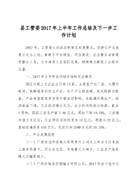 县工管委2017年上半年工作总结及下一步工作计划2017年,工管委主动适应新常态发展要求,坚持以产业发展方式为主线,着眼于平台建设、项目建设、企业服务与管理等重点工作,大力推进工业园区发展,继续做大做强工业经济总量。一、2017年上半年各项经济指标完成情况园区内规上工业企业只有13家,主要生产白厂丝、大理石板材,电解锰等初加工产品,处于产业链底端,抗风险能力较差,产品销售容易受市场价格波动影响,未能满负荷生产,经济效益下滑,工业经济增长乏力,企业抗风险能力较弱。截止4月份,园区工业总产值7.46亿元,同比下降19.78%,工业增加值2.3亿元,工业项目实际投资0.13亿元,税收0.22亿元,基础设施投资410万元,完成任务2700万元的15.19%。二、产业发展情况(一)广西桂冠开投电力有限责任公司从上年9月以来因上游来雨量少,河水水位低,发电量大大减少,工业总产值也随之大幅度减少。(二)广西忻城县宏图锰业有限公司,2017年由于电价过高再次申请停产至今,成本价格倒挂,恢复生产需待运营成本降低或产品价格回升。(三)广西忻城大塘贤明石材由于原矿山资源枯缺、忻城兴城石材有限公司也由于资金断链、广西忻城宏德石材由于市场不景气产品没有销路,处于停产状态,其他石材企业生产也是断断续续,生产经营不正常,无产值。(四)广西昊天钙业有限公司虽已进驻思练工业园,但由于征地原因到目前还没有开工建设,原因也是征地难,国土部门无法落实土地给企业。(五)我县丝绸行业企业共5家,都有意向扩大生产线,但是因用地未能得到解决,因此产值一直不能提高。其中忻城县玉蚕丝绸有限公司综合加工项目已完成第一期项目建设,于去年7月已投产6组生产线运营。第二期项目4组生产线正在安装落实当中。该公司有意向再扩大规模,但项目推进缓慢,原计划用地30亩,现在还有12亩地因征地补偿问题没能落实。(六)广西洪渡木业有限公司少数民族家具和人造板加工项目、柳州市博隆食品有限公司百香果种植加工项目自2016年入驻红渡工业园,但由于资金欠缺,项目一直没有新的进展。三、主要工作措施(一)完善园区基础设施建设。截止4月份,基础设施建设累计投资410万元,为项目尽快落地提供了保障。一是玉蚕丝绸有限公司投资150万元,进行二期工程场地硬化及厂棚搭建项目建设;二是忻鸿车辆检测中心投资60万元,进行围墙建设;三是投资100万元,进行忻城县城南新区教育路项目建设;四是忻城冠峰单采血浆有限公司投资50万元,进行场地平整。(二)强力推进工业项目建设。加快推进我县工业项目开工建设,继续保持投资对经济增长的强劲拉动,推动实现我县今年经济社会发展预期目标。2017年上半年,园区内新开工的项目有玉蚕丝绸公司二期工程项目和广西铭圆铝塑家俬有限公司家具加工项目。(三)积极配合规划项目实施。2017年,来宾市利用我县、合山市资源优势,推动来宾市合忻碳酸钙产业园区建设,大力发展碳酸钙产业。工管委积极配合相关部门做好各项工作,确保项目尽早实施。(四)围绕现有企业抓服务。一是加强闲置及低效土地的清理。加大对停产企业绿源公司、村姑农业发展公司和金宏昕公司的清理整顿力度,由政府收储再对外招商。二是帮扶企业挖掘潜力,做大规模,积极培育规模以上企业。(五)落实企业的各项安全工作。工管委坚持每月深入园区2次以上,对企业进行安全生产例行检查,发现隐患,及时整改。四、存在的主要问题(一)园区基础设施建设配套不齐。园区路网、供排水等基础设施仍待完善,三废治理压力大。石材企业的废浆渣和缫丝企业的污水还没有得到很好解决,排污问题日益突出。(二)工业储备用地不足。园区工业用地储备不足,招商引资项目无法落地。(三)园区班子建设有待加强。根据忻城县机构编制委员会《关于设立忻城县工业集中区管理委员会的通知》(忻编字〔2014〕12号),核定领导职数:主任1名,副职2名。目前管委只有主任1名且由县经贸局副局长兼任,尚未配备副职。五、下一步工作计划(一)加快完善园区配套设施。加强园区交通、道路、供水、供电、通讯、污水处理等基础设施建设。重点配合推进红渡工业园北巷码头进港二级路、污水处理厂和城南工业园排污管道、路网项目建设。(二)着力推进项目建设。一是确保在建项目如期投产运营。继续做好桑蚕茧丝种养加工销售一体化经营二期工程项目、莫老爷养生堂建设项目、洪渡木业有限公司少数民族家具加工项目、忻鸿车辆检测中心项目和博隆百香果加工项目跟踪服务工作,确保如期投产运营。二是力争新建项目尽快落地开工。做好碳酸钙深加工、牛肉深加工、中亚不锈钢制品加工、特色生态农产品(桑葚)研发开发等项目入驻园区的前期对接服务工作,力争尽快落地开工。(三)做好企业服务工作。继续深入开展服务企业活动,及时收集汇总企业生产经营中的困难和问题,并跟踪有关部门解决问题落实情况,切实解决企业和项目建设