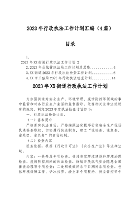 2023年行政执法工作计划汇编(4篇)目录1.2023年XX街道行政执法工作计划22.2023年县城管执法局工作计划及思路43.XX街道2023年行政执法检查工作计划..64.XX市工信局2023年行政执法检查计划.142023年XX街道行政执法工作计划为加强街道对安全生产、环境管理、疫情防控等领域的事中监管和对各行业生产生活的监督指导,依据相关法律法规规章的规定,制定2023年度执法检查计划如下:一、行政执法检查计划。(一)基本要求严格落实执法责任。严格按照法定程序行使安全生产现场执法检查职权,切实履行执法职责,建立谁检查、谁复查、谁处罚、谁负责的责任机制。(二)检查内容检查依据:根据《行政许可法》《安全生产法》等法律法规。内容:一是开展专项检查。针对市容环境建设和环境治理检查,疫情防控期间的执法检查,持续开展燃气安全隐患全面排查治理等专项检查;二是积极做好各节日期间各项检查。包括环境保障工作、铲冰扫雪、渣土车专项整治、扬尘管控等专项执法工作;做好占道经营专项整治,加强对游商摊贩整治工作的重视。三是做好日常执法工作。强化对辖区各类违法行为的监管力度,严控店外经营,堆物堆料,违规户外广告、牌匾、标识,门前三包,施工扬尘,运输车辆不符合要求,非法小广告等市容环境常见违法行为对象:不特定对象。频次、时间:每月开展现场检查。其中,巡查检查每月不少于1次;双随机检查,按照≥30%的比例开展执法检查。方式:采取查看文件证书证件、查阅资料档案台账、查看现场、调查询问等方式严格检查,同时根据检查对象状况的好坏,将执法检查对象进行分类、实行动态管理。如有特殊情况可以结合实际,主动协调有关执法部门,积极开展联合执法检查,避免多头执法、重复检查,不断提高执法效能。二、行政执法人员学习培训计划。通过学习培训,不断提高执法队员思想政治素养,准确理解相关法律条文,切实把握其精神实质,夯实执法工作基础,提升综合行政执法队伍形象,努力建设一支公正、廉洁、高效、文明的综合行政执法队伍。培训对象:具有行政执法资格的人员。时间:按照统一安排进行学习/每月集中学习一次行政执法有关规定。内容:包含从事行政执法工作所必须的公共法律知识和专业法律知识。形式:通过网络课堂学习及日常学习及实践培训。课时:行政执法人员每人每年参加学习培训的总时长不得少于60学时。2023年县城管执法局工作计划及思路及时破解巩固创建成果与城管工作常态化精细化的新任务新要求,及时回应群众对美好生活需求的新期盼。我局自我加压、超前谋划、理清思路、明确重点,对2023年城管执法工作深入谋划。力争达到环境整洁、秩序井然、舒心靓丽之成效。决定实施五项子行动。一、市容市貌提档升级行动1、重点区域流动摊点、流浪犬、户外广告及牛皮藓等;2、重点市场整治;3、重点行业乱象整治,废旧物资回收、石材、渣土;4、重点路段出店经营整治,五里岗等;5、重点包保小区集中整治。二、查违控违联动攻坚行动1、专项巡查;2、棚户区改造核对及攻坚;3、投入举报查处;4、强拆及即查即拆;5、联动机制及信息化的应用、调度和考核等。三、环卫保洁精细长效行动1、生活垃圾分类;2、重大项目推进,封场及垃圾发电等;3、灾害时分保畅通保运转等;4、科学谋划生活垃圾保洁、清运、处理的频次等;5、公厕运维提升。四、队伍管理优化振奋行动1、强化甲方督查考核及与乙方沟通等;2、督促乙方对公司管理等;3、协调督促乙方甲方配合联动等。五、执法办案刚柔相济行动1、制定全年办案任务目标;2、做好正面激励及反面曝光、查处等。全年以信息化引领查违控违及市容市貌门前三包为两大工作亮点。XX街道2023年行政执法检查工作计划为了进一步规范行政执法行为,强化行政执法责任,落实行政执法措施,提高行政执法水平,根据《安全生产法》、《安全生产监管监察职责和行政执法责任追究的暂行规定》等的规定,制定XX街道2023年行政执法检查计划。一、指导思想深入贯彻落实习近平新时代中国特色社会主义思想,坚持人民至上,生命至上的方针,使安全生产红线意识和法治观念,深深根植于广大基层干部和企业负责人心中,紧紧围绕上级安全生产文件和会议部署的工作任务,以深入贯彻落实安全生产法律法规,强化生产经营单位安全生产主体责任落实为重点,继续深化安全生产执法行动,强化重点行业执法检查,督促生产经营单位落实安全生产主体责任、排查治理隐患,严厉打击安全生产领域的非法违法行为,着力提高行政执法的针对性和实效性,有效遏制较大以上事故,坚决防控重特大事故,确保全街道安全生产形势的稳定。二、工作目标生产经营单位主体责任落实有力。生产经营单位安全生产主体责任落实取得明显进展,生产经营单位安全标准化建设进一步规范、达标率进一步扩大,班组安全管理明显加强。重点