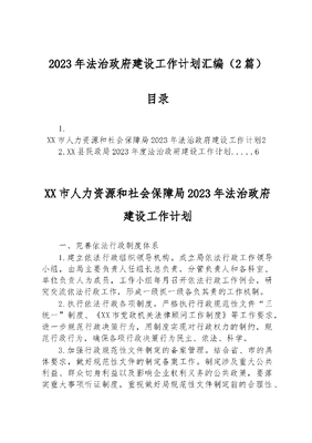 2023年法治政府建设工作计划汇编(2篇)目录1.XX市人力资源和社会保障局2023年法治政府建设工作计划22.XX县民政局2023年度法治政府建设工作计划..6XX市人力资源和社会保障局2023年法治政府建设工作计划一、完善依法行政制度体系1.建立依法行政组织领导机构。成立局依法行政工作领导小组,由局主要负责人任组长总负责,分管负责人和各科室、单位负责人为成员,工作小组每月召开依法行政工作例会,研究交流依法行政工作,形成一级抓一级各负其责的工作机制。2.执行依法行政各项制度。严格执行行政规范性文件三统一制度、《XX市党政机关法律顾问工作制度》等工作要求,进一步规范行政决策行为,用制度实现对行政权力的制约,规范行政行为,确保各项行政决策行为民主、依法、科学。3.加强行政规范性文件制定的备案管理。结合省、市的具体要求,做好规范性文件的制定备案工作。制定涉及重大公共利益、群众切身利益以及影响企业权利义务的公共政策,要落实重大事项听证制度,重视做好局规范性文件制定前的合理性、可行性调研和论证工作,严格执行规范性文件合法性审核制度。二、严格规范公正文明执法4.加大行政执法力度。综合运用日常巡查、部门联动、投诉举报等多种手段,健全执法问题常态化发现工作机制。加强关系人民群众切身利益重点领域行政执法,强化双随机、一公开抽查事项清单与互联网+监管系统检查实施清单的调整及衔接,加大实地核查和重点抽查力度。5.严格行政执法行为。以现场推进、典型案例指引等方式,抓好行政执法三项制度落实。全面梳理、规范和精简执法事项。规范涉企行政检查,着力解决涉企现场检查事项多、频次高、随意检查等问题。6.创新行政执法工作。加强行政指导、行政奖励、行政和解等非强制行政手段的运用,推广说服教育、劝导示范、警示告诫、指导约谈等方式,实行柔性执法、说理性执法。健全行政执法人员以案释法制度,把普法融入行政执法全过程,开展实时精准普法。7.推进行政执法网格化监管。进一步深化以保障农民工工资支付监管平台为依托的劳动监察网格化建设,将劳动监察网格化管理延伸到各类用人单位,加强网格化信息采集工作,通过建立网格化信息联通平台对网格内信息进行实时分析比对,从而实现对企业守法情况的掌握和预防,监督行政执法人员依法行政情况。三、提高行政应诉复议效能8.加强和完善行政复议和行政应诉工作。积极探索引入调解机制,加强协调,有效减少行政争议。严格落实《XX市人民政府行政复议案件办理规程》,明确行政复议案件办理程序,促进依法行政。根据《行政复议法》《行政复议法实施条例》等规定,认真研究并拓宽行政复议的工作方式方法,发挥好法律顾问参谋建议作用,有效提高行政复议工作效率,确保全年行政机关负责人出庭应诉率保持在100%,确保行政诉讼败诉率逐年降低,提高依法行政的工作质量。9.加强行政案卷规范化管理。进一步加大案卷资料归档管理工作力度,确保案件卷宗资料归档完整、准确,为人社工作开展提供有力支撑。完善行政案卷管理和评查工作,落实重大行政处罚决定备案制度,定期进行行政执法情况统计分析。建立监督检查记录制度,构建教育、预防和奖惩并重的执法监督机制,配合市政府法制办做好对行政处罚执法案卷的评查活动。四、服务保障经济社会高质量发展10.积极开展普法宣传工作。不断提高用人单位和职工的法律意识,促进用人单位依法用工、职工依法维权,维护社会的和谐稳定。以《社会保险法》《劳动合同法》《劳动法》《就业促进法》《保障农民工工资支付条例》等法律法规为内容,积极组织工伤、劳动关系、监察、仲裁等相关业务部门,区别不同对象,采取多种方式,有针对性地深入开展普法宣传。对广大劳动者要充分利用各种宣传媒体,举办现场法律法规咨询以及电话咨询服务等多种渠道进行广泛宣传,重点宣传劳动者依法应享有的权利以及应承担的义务,引导依法维权。11.服务保障民生。全面加强12345政务服务便民热线功能,及时办理群众反映的各种问题。结合我局工作实际在劳动合同解除、社会保险费征缴、加班费及工资支付、规范用工、制定规章制度、签订集体合同、工资集体协商和劳动争议仲裁调解等方面,及时消除矛盾隐患风险,防止发生群体性争议案件,确保我市劳动关系的和谐稳定。五、强化组织保障和工作落实12.深化法制学习教育。落实党政主要负责人履行推进法治建设第一责任人职责工作责任清单和年终述法制度。落实党组理论中心组定期学法制度,每年至少举办2次法治专题讲座。加强对法制学习教育的领导,建立学习培训制度,制定学习培训工作计划,落实学习培训工作措施,要积极采取灵活多样的学法形式,通过组织法律、法规专家讲座,开展法制学习论坛,参加上级主管部门法制培训,新闻媒体报道等多种途径扩大普法宣传面。深化专业人学专业法,建立领导干部应知应会学法清单制度,加强法治能力考查测试。13