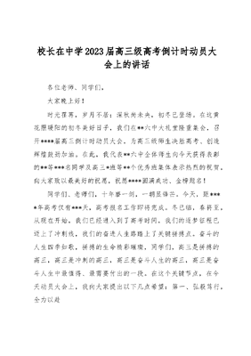 校长在中学2023届高三级高考倒计时动员大会上的讲话.docx