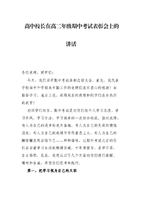 高中校长在高二年级期中考试表彰会上的讲话.docx