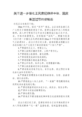 关于进一步强化正风肃纪确保中秋、国庆廉洁过节的提醒函.docx