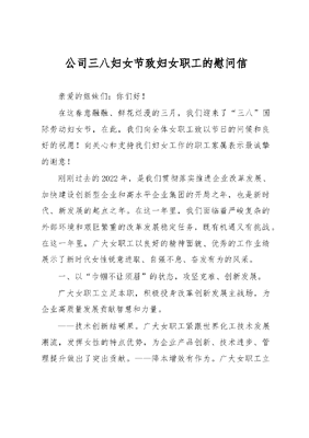 公司三八妇女节致妇女职工的慰问信.docx