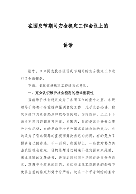 在国庆节期间安全稳定工作会议上的讲话.docx