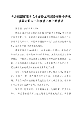 吴启旺副巡视员在省建设工程招投标协会庆祝改革开始四十年演讲比赛上的讲话.docx