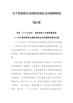 关于贯彻落实全国组织部长会议精神的情况汇报.docx