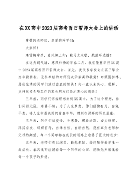 在XX高中2023届高考百日誓师大会上的讲话.docx
