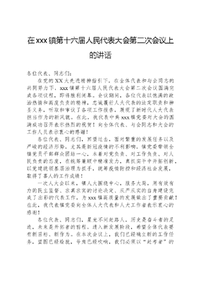 在xxx镇第十六届人民代表大会第二次会议上的讲话.docx