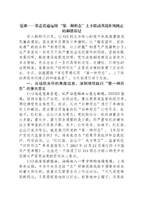 党课——常态贯通运用+“第一种形态”上下联动共筑作风纯正的和谐基层.docx