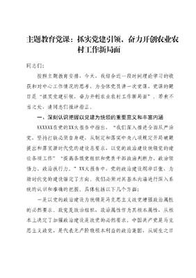 主题教育党课:抓实党建引领,奋力开创农业农村工作新局面.docx