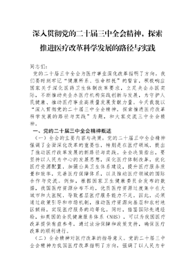 医疗系统全会精神宣讲稿:深入贯彻党的二十届三中全会精神,推动医疗改革发展的路径与实践.docx