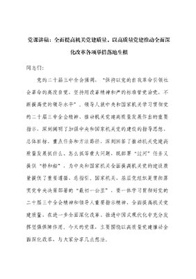 二十届三中全会宣讲稿:全面提高机关党建质量,以高质量党建推动全面深化改革各项举措落地生根.docx