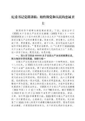 纪委书记党课讲稿:始终做党和人民的忠诚卫士.docx