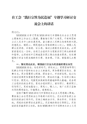 在工会“践行宗旨为民造福”专题学习研讨交流会上的讲话.docx