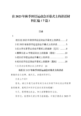 (7篇)在2023年秋季田径运动会开幕式上的讲话材料汇编.docx