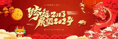 公司2023年工作报告和2024年龙年迎新宽屏PPT模板.pptx