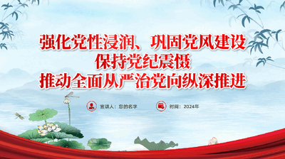 廉政党课ppt:强化党性浸润、巩固党风建设、保持党纪震慑,推动全面从严治党向纵深推进(含讲稿).pptx