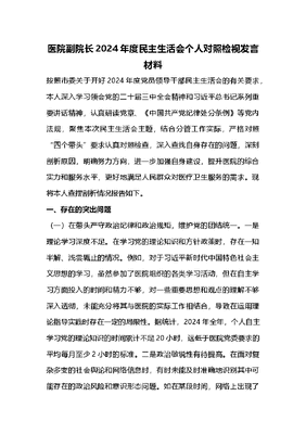 医院副院长2024年度民主生活会个人对照检视发言材料.docx