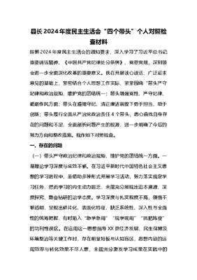 县长2024年度民主生活会“四个带头”个人对照检查材料.docx