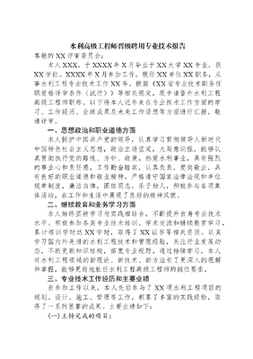 水利高级工程师晋级聘用专业技术报告.docx