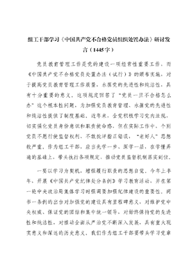 组工干部学习《中国共产党不合格党员组织处置办法》研讨发言.docx