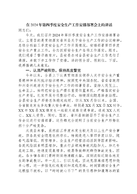 在2024年第四季度安全生产工作安排部署会上的讲话.docx