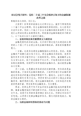研讨会发言材料:党的二十届三中全会精神引领下的金融体制改革之路.docx