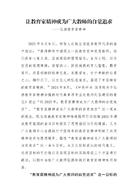 教育家精神专题教育讲稿:让教育家精神成为广大教师的自觉追求.docx