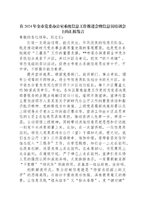 在2024年全市党委办公室系统信息工作推进会暨信息员培训会上的汇报发言.docx