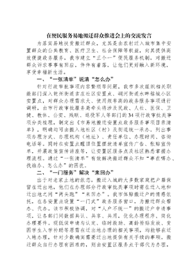 在便民服务易地搬迁群众推进会上的交流发言.docx