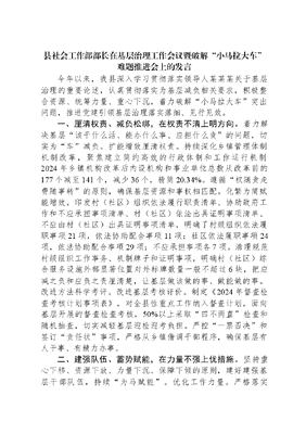 县社会工作部部长在基层治理工作会议暨破解“小马拉大车”难题推进会上的发言.docx