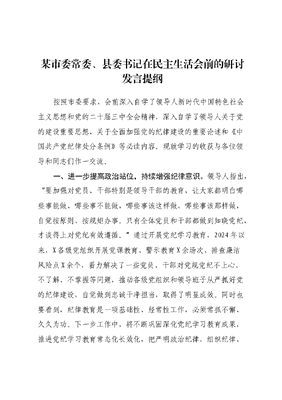 某市委常委、县委书记在民主生活会前的研讨发言提纲.docx