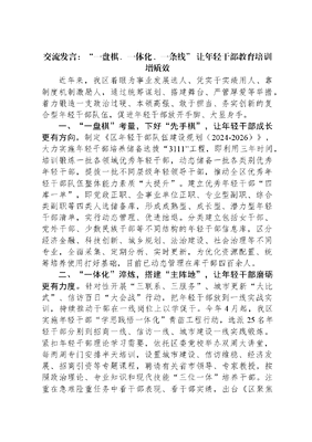 交流发言:“一盘棋、一体化、一条线”+让年轻干部教育培训增质效.docx