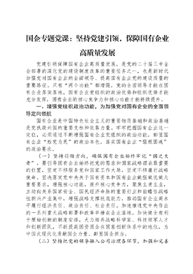 国企专题党课:坚持党建引领,保障国有企业高质量发展.docx