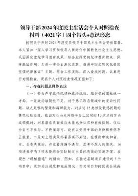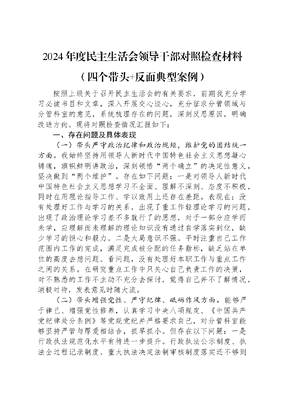 2024年度民主生活会领导干部对照检查材料(四个带头+反面典型案例).docx