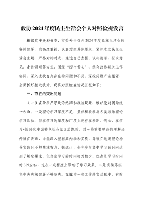 政协2024年度民主生活会个人对照检查2(含典型案例剖析).docx