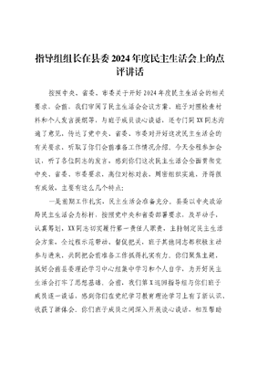 指导组组长在县委2024年度民主生活会上的点评讲话.docx