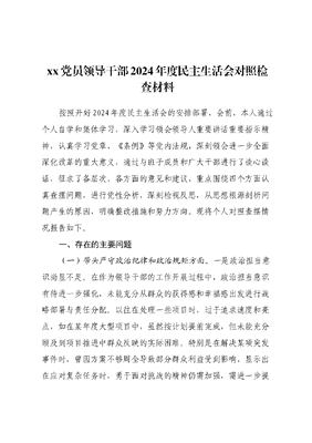 xx党员领导干部2024年度民主生活会对照检查材料(四个带头).docx