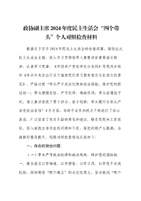 政协副主席2024年度民主生活会“四个带头”个人对照检查材料.docx