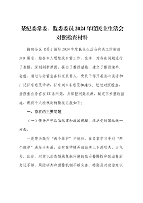 某纪委常委、监委委员2024年度民主生活会对照检查材料.docx