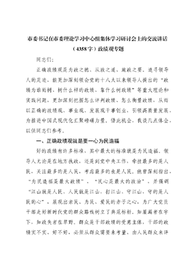 市委书记在市委理论学习中心组集体学习研讨会上的交流讲话政绩观专题.docx