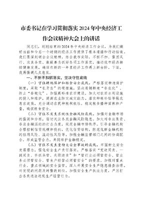 市委书记在学习贯彻落实2024年中央经济工作会议精神大会上的讲话.docx