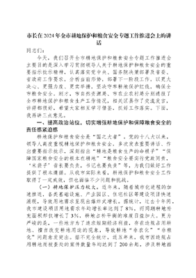 市长在2024年全市耕地保护和粮食安全专题工作推进会上的讲话.docx