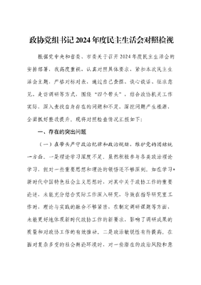 政协书记2024年度民主生活会对照检查(含典型案例剖析).docx