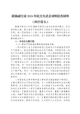 政协副主席2024年民主生活会对照检查材料(四个带头).docx
